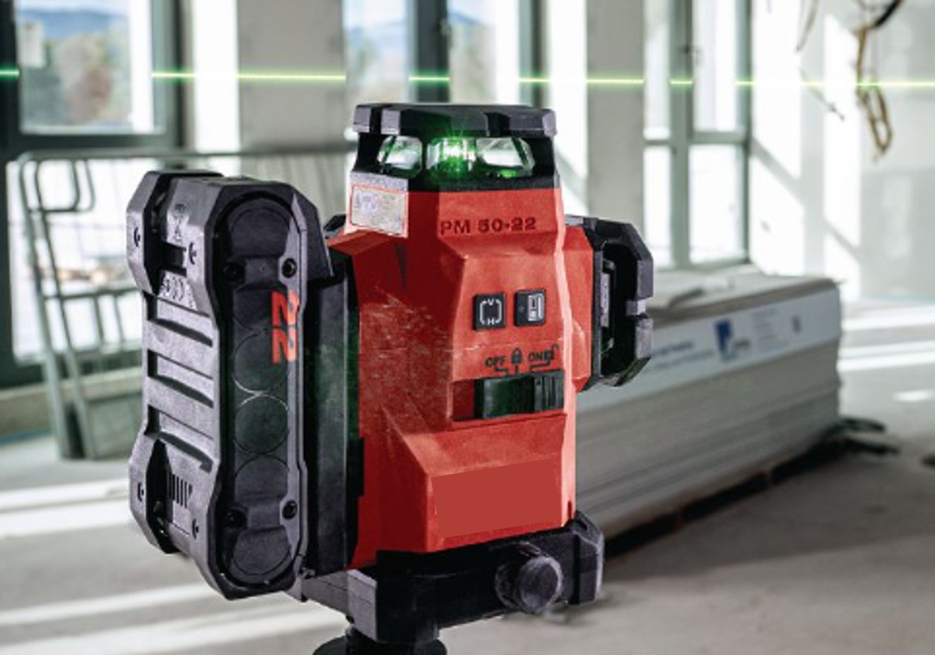 Der PM 50MG-22 Mehrlinienlaser ist ein selbstnivellierender grüner 360°-Multilinienlaser auf der Nuron-22V-Plattform, entwickelt für präzises Nivellieren, Ausrichten und Abstecken im Innenausbau und auf der Baustelle. Er projiziert drei 360°-Laserebenen (eine horizontale, zwei vertikale) und ermöglicht so mit nur einem Aufstellpunkt das Ausrichten von Trockenbauprofilen, das Nivellieren abgehängter Decken, das Übertragen von Höhen und das genaue Positionieren von Steckdosen, Heizkörpern, Rohren und Kabeltrassen.Dank hellen grünen Laserlinien ist die Sichtbarkeit auch bei größerer Entfernung und hellem Umgebungslicht sehr hoch. Der Laser nivelliert sich in ca. 3 Sekunden automatisch im Bereich von ±4,25° und ist nach IP54 gegen Staub und Spritzwasser geschützt – ideal für den Baustelleneinsatz.VorteileUnser Laser mit der höchsten Sichtbarkeit – neue leistungsstarke Laserdioden erzeugen hellere und schärfere Linien, selbst bei großer Entfernung, so dass Sie mit weniger Einstellungen ausrichten und bei Tageslicht leichter arbeiten könnenUnsere längste Betriebsdauer – die 22-V-Nuron-Plattform bietet zwischen 15 Stunden (B22-55) und 24 Stunden (mit B22-85) Dauerbetrieb, so dass Sie pro Ladung länger arbeiten und Ausfallzeiten reduzieren könnenRobustes Design – ein verbessertes, sturzsicheres Industriegehäuse mit Gummidämpfern sowie Temperatur- und Feuchtigkeitsschutz tragen dazu bei, dass das PM 50MG-22 länger hält und während seiner gesamten Lebensdauer genau bleibtIntelligentere Funktionen mit Nuron – intelligente Anlagenverfolgung, Anzeige der Batterielebensdauer und Kompatibilität mit der Nuron-Batterieplattform, um die Komplexität zu verringern und Ihren Gerätepark kosteneffizient zu haltenKompatibles Sicherheitszubehör – der optionale Haltegurt verhindert das Herunterfallen des Werkzeugs und erhöht die Sicherheit des Benutzers bei ÜberkopfarbeitenAnwendungenDrei 360-Grad-Laserebenen (eine horizontale und zwei vertikale) zum Nivellieren, Ausrichten und Abstecken rechter Winkel sowie für Sanitärarbeiten mit einem einzigen AufstellungspunktAusrichten von Trockenbauprofilen an Böden, Wänden und Decken sowie vertikales Ausrichten von Rohren und KabelnNivellierung von hängenden DeckenÜbertragen von Messmarken (Referenzhöhen)Nivellieren und Ausrichten von Steckdosen, Kabeltrassen, Heizkörpern und Rohren